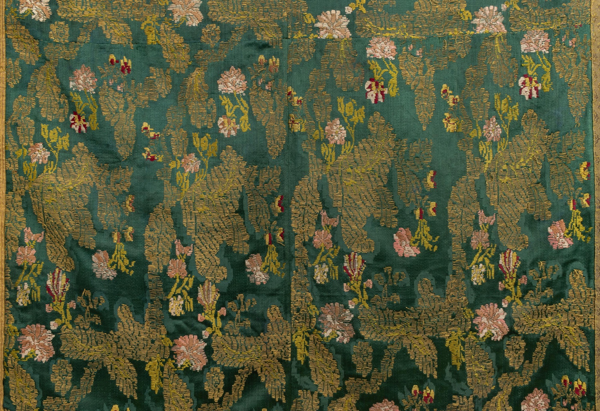 Бархат, шёлк, атлас, мех, кружева, вышивки, ковры, драпировки — всё это одновременно и реальный быт двора, и язык знаков.