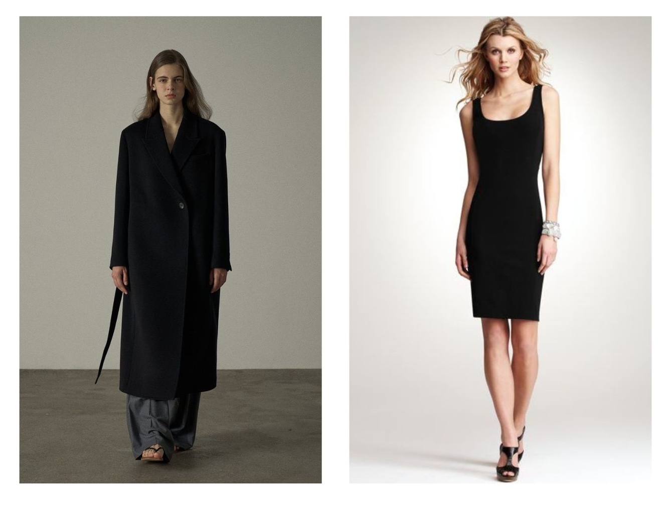 This geometry produces an impression of structure and control. It's less about the body and more about position: the contour establishes distance, composure, the status of form. The waist may be present here, but usually doesn't become the center of the composition—more important is the sense of framework: shoulders, verticals, straight lines, even hemline, readable fit. Practically, it always comes down to one thing: the silhouette must hold itself. Even soft fabric can work within rectangular logic if it has a clear contour and readable vertical.
