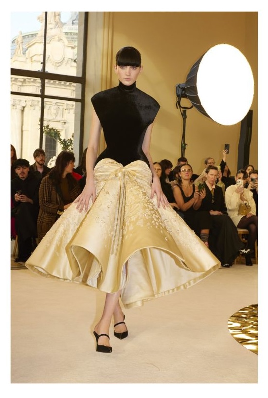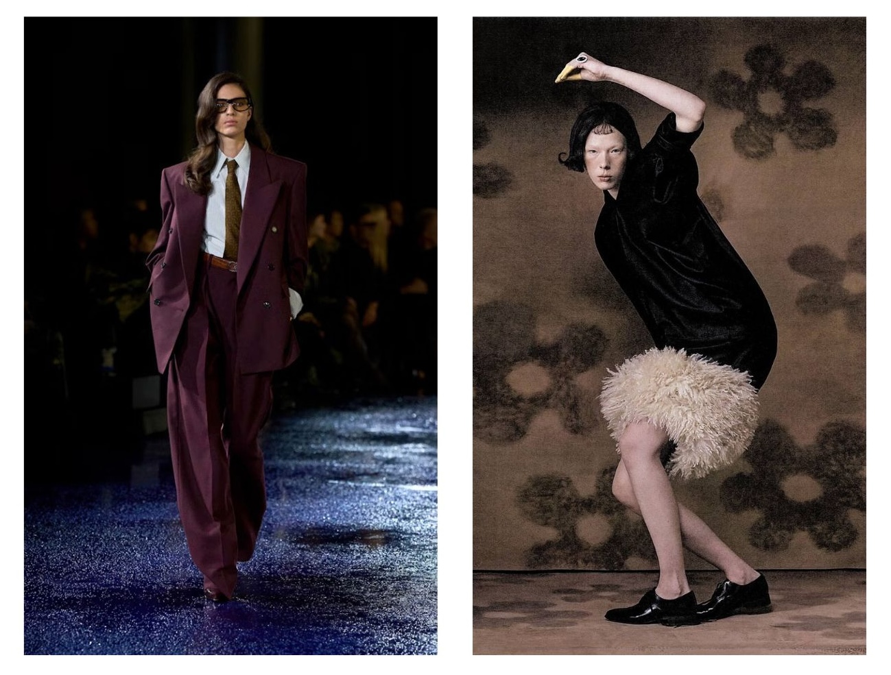 In clothing, the circle is almost never literal: on the figure it almost always becomes an oval—an elongated circle that can be mentally traced as one continuous contour. Thus circular logic means a unified contour and the sense of an envelope: cocoon, capsule, rounded architecture of form, a single shape. And this can work in very different ways: the circle can be soft and bodily, but it can also be austere—like a hermetic form, like a wholeness that cannot be disassembled. Then it transmits an impression of unified autonomy: the image appears gathered unto itself.