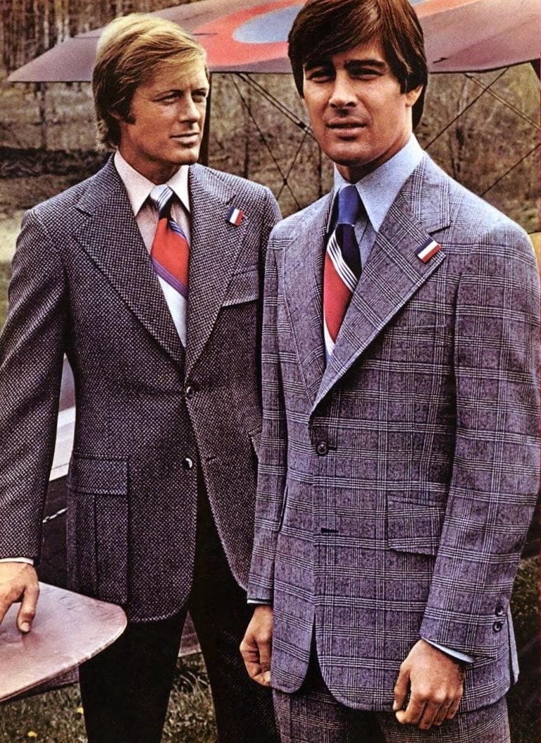 In these decades, clothing for the first time massively becomes not just a sign of class or profession but a statement about whose side you are on: "normal life," protest, "peace and love," "nothing is sacred," "I'm from the club, not the office."